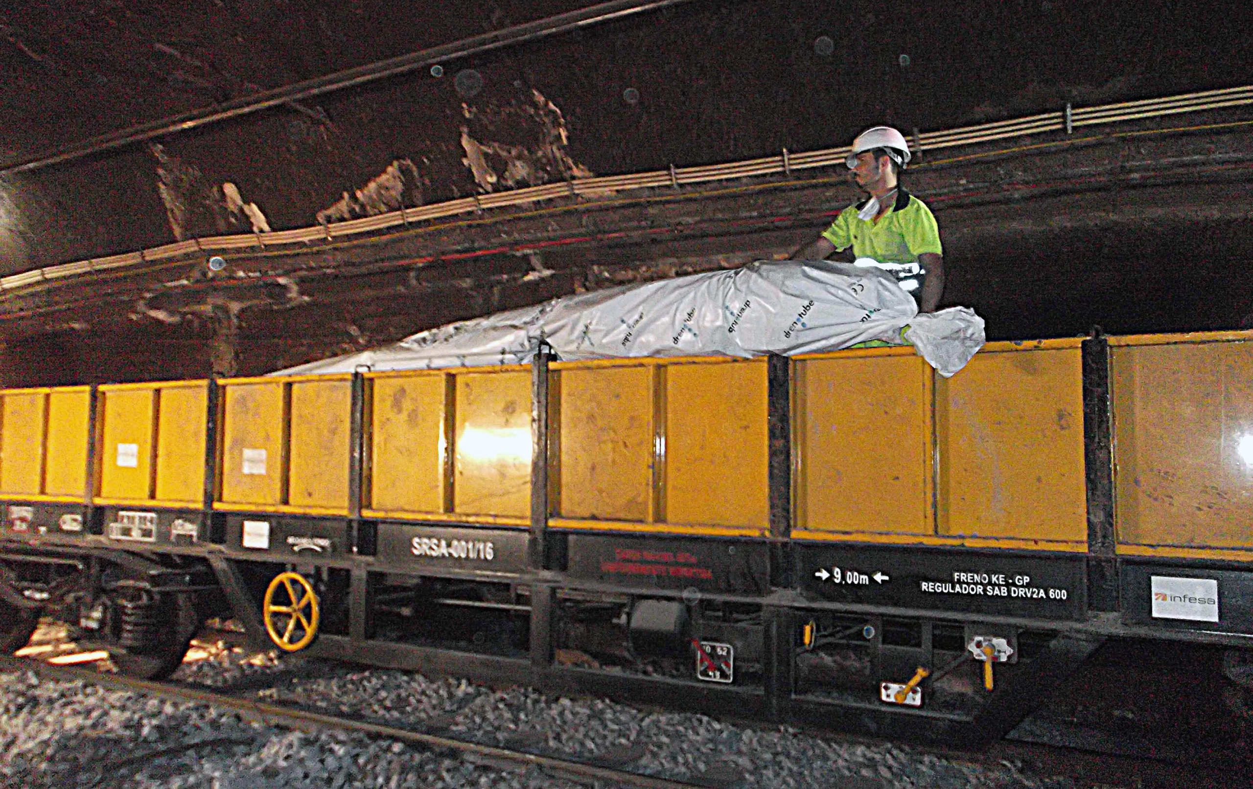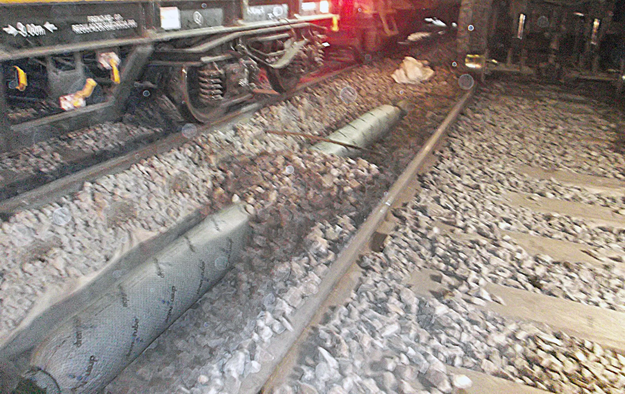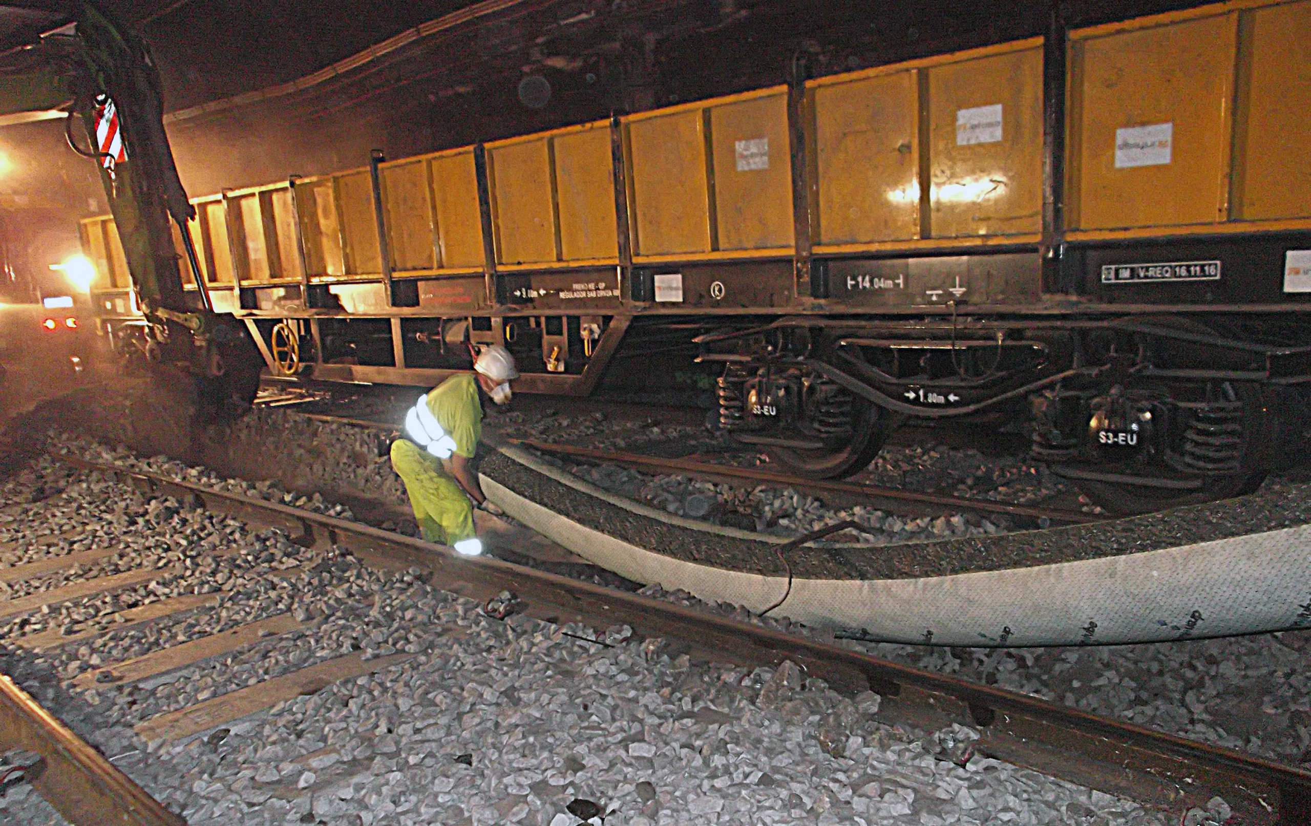 Installation de drenotube® longitudinalement entre les voies ferrées pour éviter les inondations. Le drainage est relié aux stations de pompage de puisard. Drenotube était recouvert de 30 cm de ballast ferroviaire et relié à des stations de pompage de puisard.